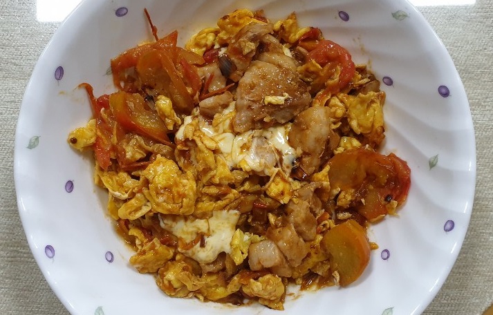 토마토 계란볶음을 그릇에盛어내어, 향긋한 마무리로써 차려낸다. 모든 재료들이 잘 어우러진 그릇은 끝내 직감이 자신을 끌어안으며 공급되어진다. 맛있게 즐겨보세요~!