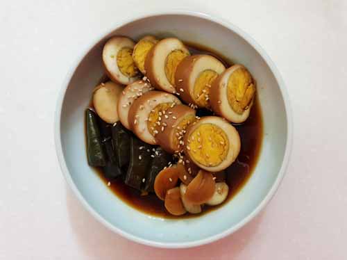 이제 계란 장조림이 완성되었습니다! 향긋한 계란 향과 간장의 진한 맛이 어우러져 한국의 전통 음식을 만끽할 수 있습니다.