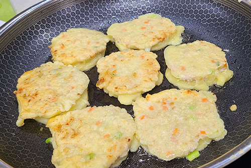 팬의 온도는 중약불로 맞추세요. 불이 너무 강하면 고기전 겉이 타버리기 쉽고, 불이 너무 약하면 고기전이 기름을 흡수해 기름지게 됩니다. 팬이 충분히 달궈졌을 때 고기전을 올려주면 바삭하고 고소한 고기전이 완성됩니다!
