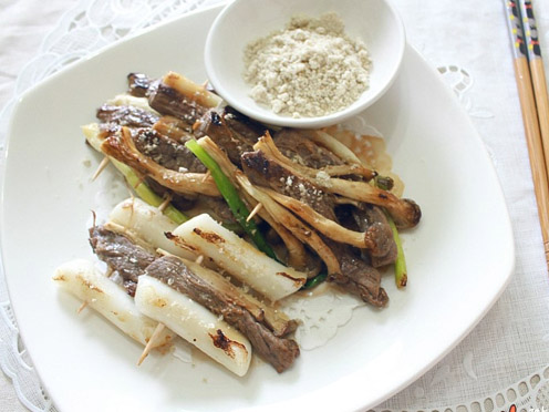 각 재료의 크기와 두께를 비슷하게 맞춰서 꽂으면 구울 때 더욱 고르게 익을 수 있답니다! 예를 들어, 고기와 파프리카, 버섯을 한 번에 꽂으면 서로 다른 식감이 나서 아주 맛있어요! ^^