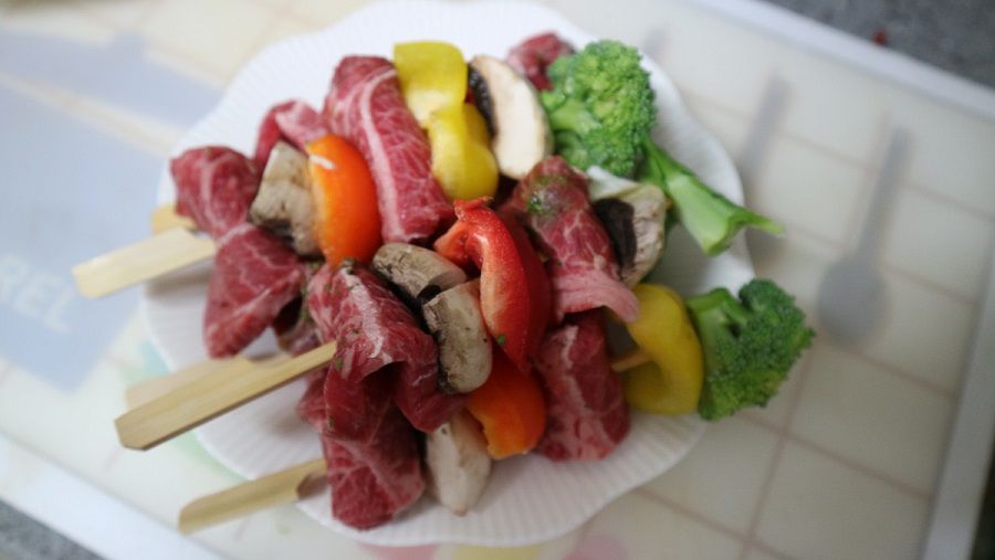 먼저, 준비한 꼬치에 고기와 야채를 번갈아가며 꽂아주세요! 고기와 야채를 섞어서 구우면 더 맛있는 조화가 생기는데요~! 😊 너무 꽉 꽂지 말고 여유 있게 꽂는 것이 중요해요. 꼬치에 재료가 너무 꽉 꽂히면 고기가 고르게 익지 않아요!