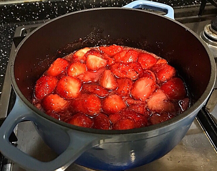 - 끓이기: 딸기쨈 혼합물을 중불로 달궈줍니다. 달궈지는 동안 계속 저어주어야 합니다. 저어주지 않으면 젤라틴이 뭉치게 되어 고르지 않은 질감이 될 수 있습니다. 약 10분간 끓여주면 딸기쨈이 농도가 진해지고 고와집니다.