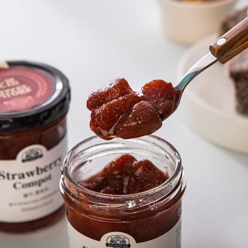 - 냉장보관: 딸기쨈이 적당한 농도에 도달하면 불을 끄고 식힙니다. 냉장고에 넣어 완전히 식히면서 딸기쨈이 더욱 고와집니다. 뚜껑을 닫고 냉장 보관해주세요. 식힌 후에도 딸기쨈은 조금씩 더 굳어지니 참고하시기 바랍니다.