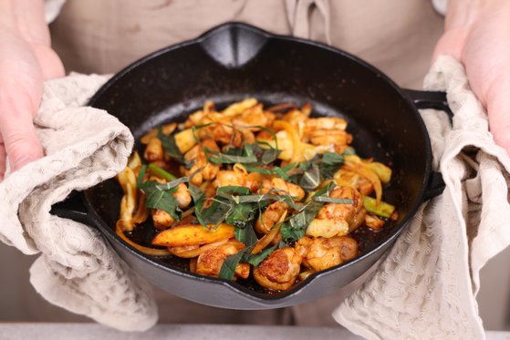 - 완성된 닭갈비를 팬째로 식탁에 올려 함께 즐기면 더욱 맛있어요. ^^