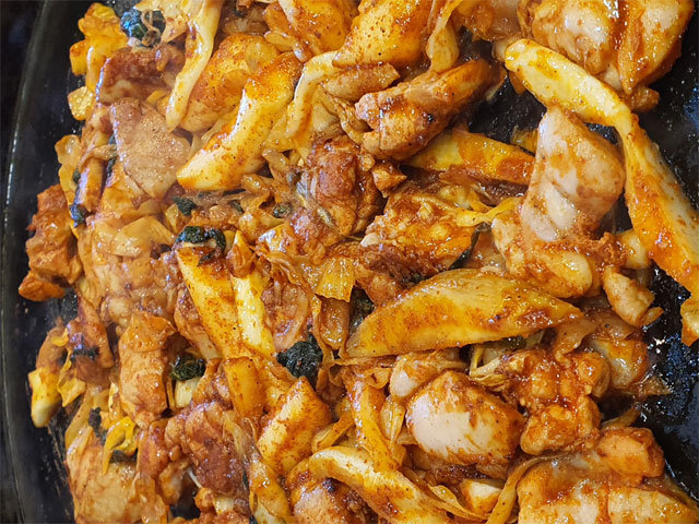 4. 볶는 시간: 중불에서 천천히 볶는 것이 닭과 야채가 골고루 익어 맛을 극대화시키는 비결입니다.