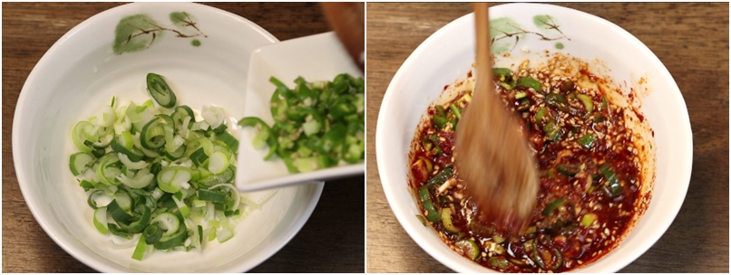양념장 재료: 간장, 고춧가루, 다진 마늘, 참기름, 설탕, 후추