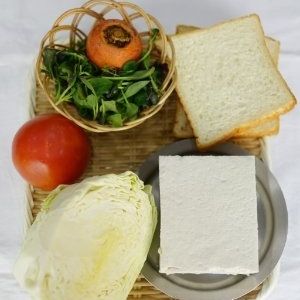 - 각각의 빵 조각 위에 마요네즈를 얇게 발라주고, 구운 두부, 상추, 토마토 등을 차례대로 올려 주세요.