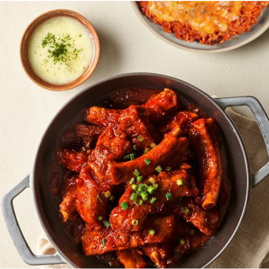 등갈비찜의 향긋한 향과 부드러운 고기가 완성되었습니다. 먹음직스러운 모습에 가족들의 입맛을 사로잡을 것입니다. 고기와 함께 조리된 채소는 고기의 맛을 더욱 살려주며, 양념 소스가 고기와 채소에 고루 배어 더욱 풍부한 맛을 선사합니다.