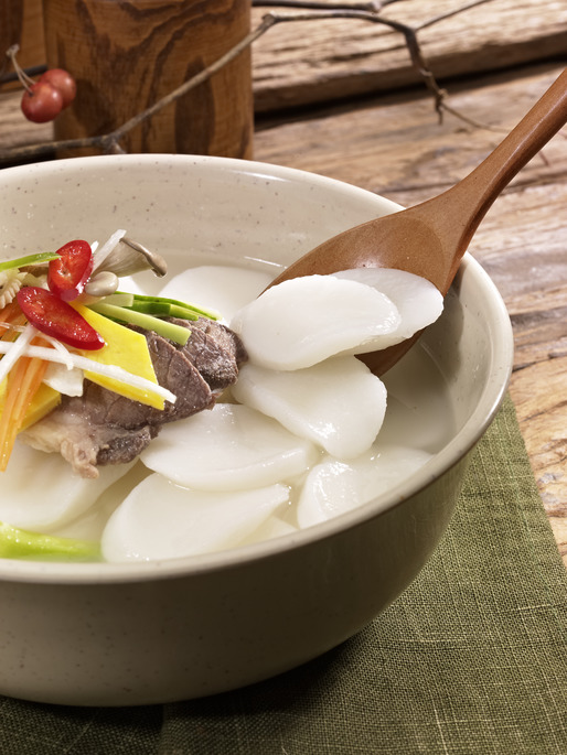 - 떡국떡: 얇게 썬 흰 떡 (쌀떡)