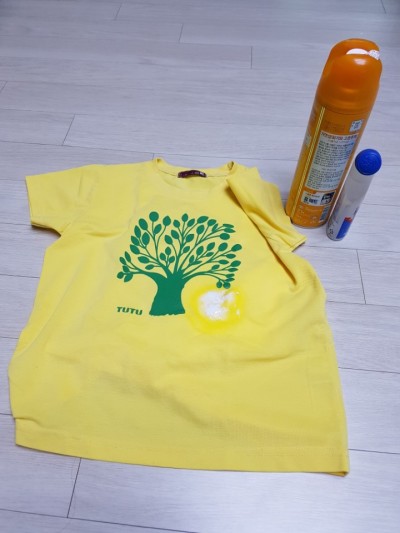 먼저 껌 자국이 있는 부분에 라이터 가스를 직접적으로 뿌려주세요! :) 약 5초간 고르게 뿌리면 충분합니다. 라이터 가스가 껌에 닿으면 급속하게 냉각되어 껌이 단단해집니다.