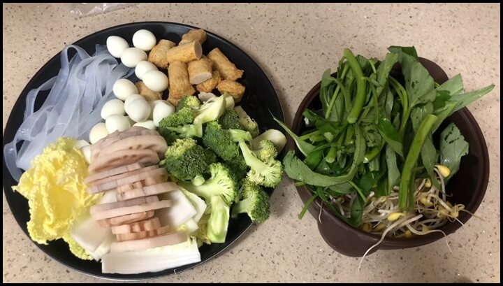 - 채소 - 다양한 채소를 추가하여 식감과 영양을 더할 수 있습니다. 양배추 100g, 버섯 50g, 청경채 50g을 추천합니다.