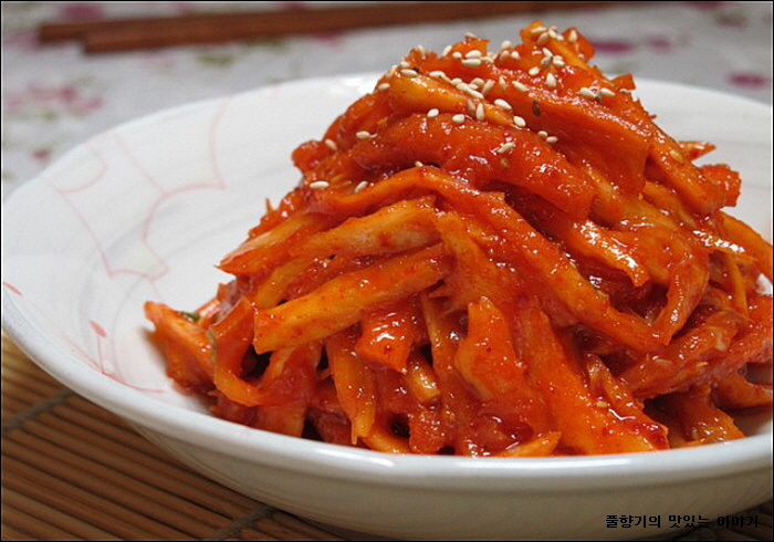 매콤하고 상큼한 더덕무침 만드는법은 다음과 같습니다: