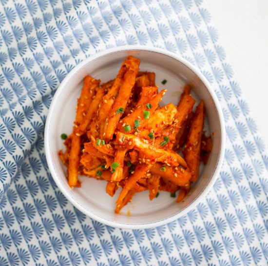 - 더덕을 데친 후 찬물에 헹굴 때 체에 밭쳐 물기를 완전히 제거해야 합니다. 물기가 남아있으면 양념이 더덕에 잘 베지 않을 수 있습니다.