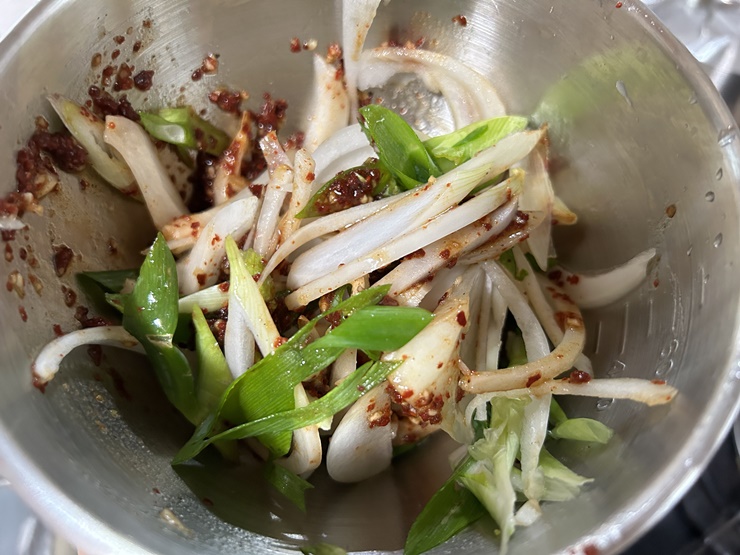 4단계: 표면이 노릇해지면 대파와 깨소금을 얹어 마무리! 이렇게 하면 황금레시피 완성~!