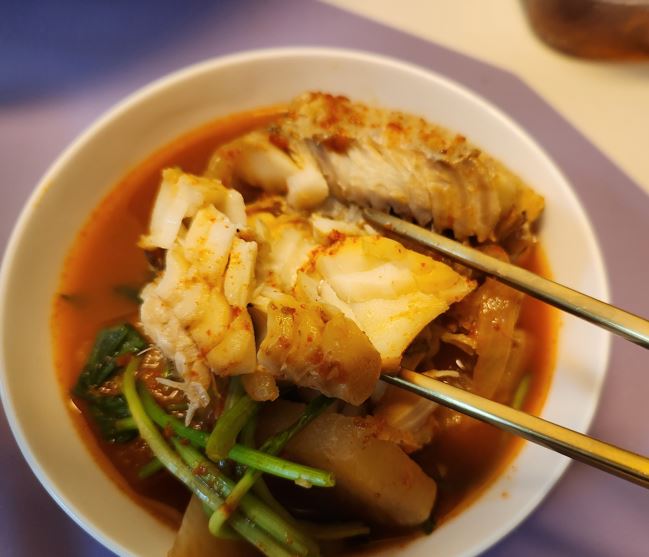 1. 명태를 너무 일찍 넣어 퍼졌어요. 명태는 조리 마지막 5분 전에 넣는 것이 좋습니다.