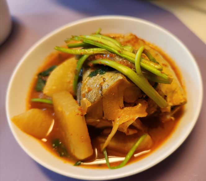명태 넣는 시점: 너무 일찍 넣으면 과하게 익어 퍼질 수 있어요. 무가 반쯤 익었을 때가 적당합니다.