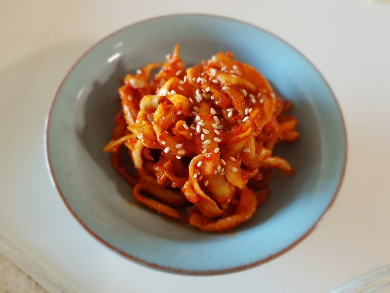 발효가 끝난 무우를 깨끗한 용기에 담아 뚜껑을 닫고 냉장고에 보관합니다. 무우말랭이는 시간이 지나면 더욱 깊은 맛을 낼 수 있으므로, 냉장보관 후 하루 정도가 지나면 최적의 상태에서 맛있게 즐길 수 있습니다.