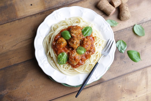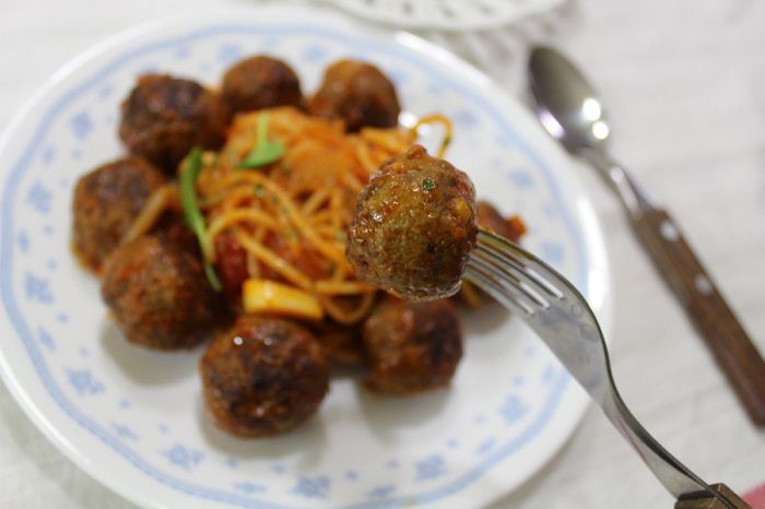 - 접시에 스파게티 면을 둥글게 말아 올려놓고, 미트볼을 보기 좋게 올려줍니다.
