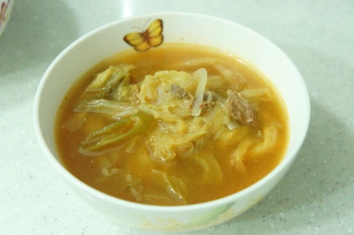 배추를 넣은 후 너무 오랫동안 끓이면 배추가 지나치게 삶아지므로, 적당한 시간에 불을 줄이고 끓이세요.