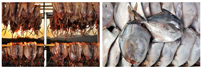 - 채소: 무와 대파, 고추 등의 채소를 병어 주변에 보기 좋게 배치합니다.