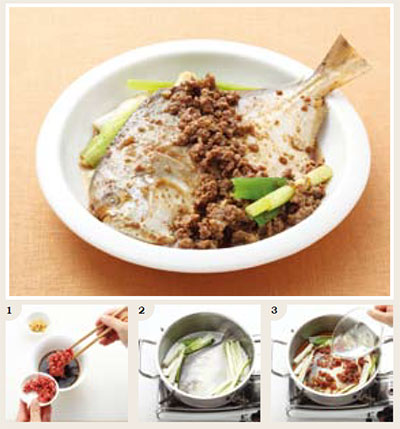 - 병어 올리기: 손질한 병어를 무 위에 얹고, 대파와 청양고추를 병어 위에 올려주세요.