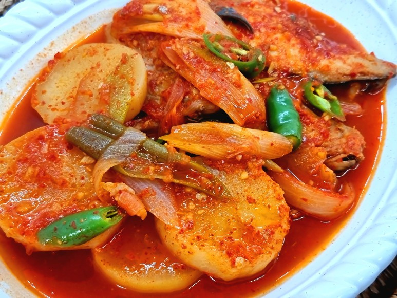 - 생선과 함께 양념장을 끓입니다: 양념을 잘 섞은 후 생선과 함께 냄비에 넣고 끓입니다. 뚜껑을 덮고 중불에서 약 10분간 조리합니다. 생선이 양념의 맛을 잘 흡수하도록 해줍니다.