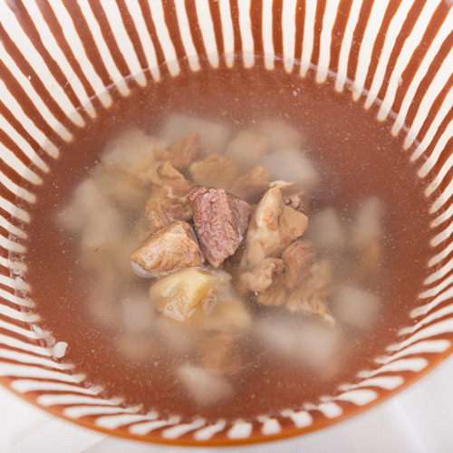 소고기의 조리 시간은 고기의 부위와 크기에 따라 다를 수 있습니다. 고기가 너무 오래 익으면 질겨지고, 너무 짧게 익으면 식감이 부족할 수 있으니 적절한 시간을 유지해주세요. 고기가 익으면 즉시 건져내어 국물에 넣어주세요.