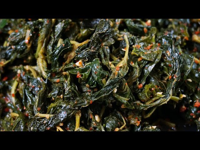 4. 볶아진 깻잎순에 소금과 설탕을 넣고 간을 맞춥니다.