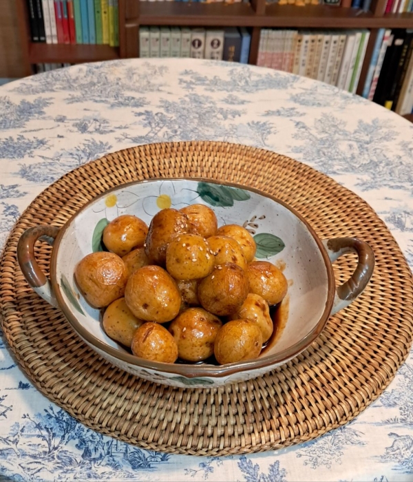 알감자는 탄수화물과 섬유질이 풍부하여 에너지원으로 탁월한 반찬입니다. 또한, 비타민 C가 풍부해서 면역력 강화에 도움이 되며, 감자의 칼륨은 체내 나트륨 배출을 도와 혈압 조절에 기여합니다. 이 요리는 건강한 영양소를 제공하면서도 부담스럽지 않아 다이어트 식단으로도 적합해요~ 😊