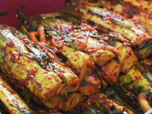 오이소박이를 담근 후에는 뚜껑이 있는 용기에 담아 냉장고에서 1일 정도 숙성시켜줍니다. 이렇게 하면 소스가 오이에 잘 베어 더 맛있는 오이소박이를 즐길 수 있습니다.
