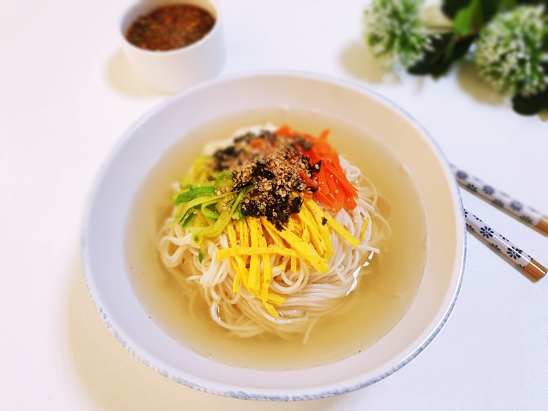 - 고명 (계란, 김, 오이, 당근 등)