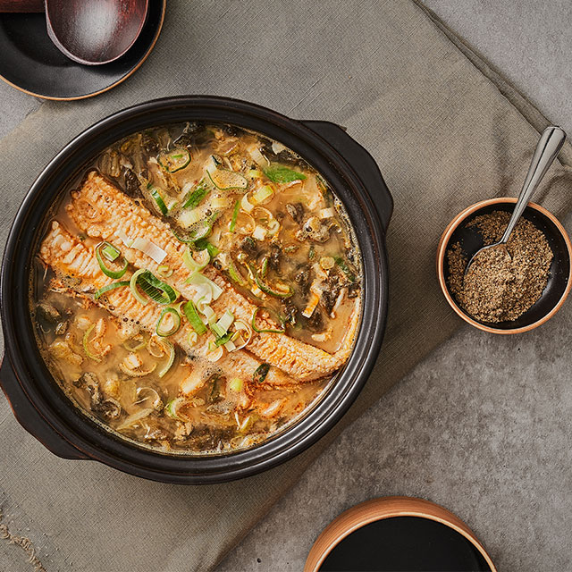 - 마무리: 장어가 익으면 불을 끄고 마지막으로 소금과 후추로 간을 맞춥니다. 그 후에 대파를 뿌려 식감과 향을 더해줍니다.
