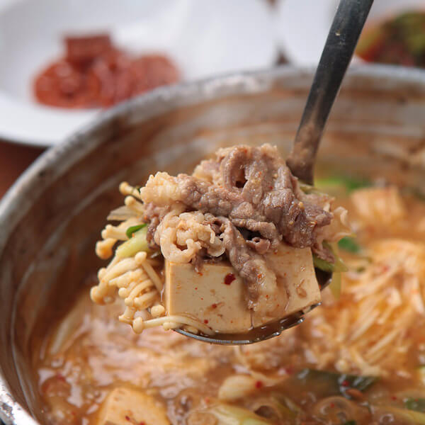 또 다른 방법은 이 소스를 국물 요리에도 사용할 수 있다는 점이에요. 황금 소스를 약간 더 넣고, 물을 부어서 국물을 만들면 차돌박이 국물 요리가 됩니다. 숙주와 함께 먹으면 정말 맛있답니다! ^^
