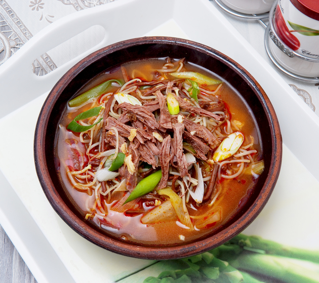 효능: 칼칼한 육개장은 한국인들에게 사랑받는 대표적인 음식 중 하나입니다. 고기와 채소가 풍부한 영양을 제공하고, 매운 맛은 식욕을 돋우어 식사를 즐겁게 합니다. 특히 감기와 같은 감기 증상이 있을 때는 체내를 따뜻하게 해주어 회복에 도움이 됩니다.