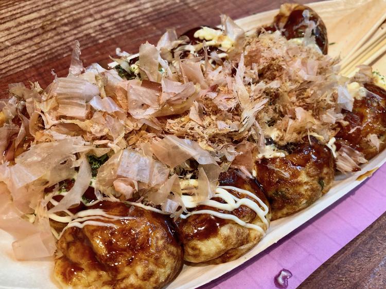 타코야키의 마지막 단계에서 가쓰오부시를 충분히 뿌리면, 타코야키의 풍미가 한층 더 살아나요. 가쓰오부시는 타코야키 위에서 살짝 춤을 추듯 부드럽게 움직이며, 그 맛이 반죽과 잘 어우러져 최상의 맛을 만들어냅니다! ^^ 과하지 않게 적당량을 뿌려주세요!