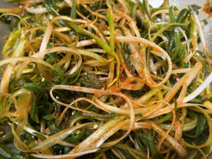 2. 파 넣기: 반죽에 파를 넣고 살짝 섞어줍니다. 이때 파가 고르게 분포되도록 해야 모든 부분에서 파의 향이 느껴지는 파전이 완성돼요!