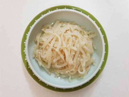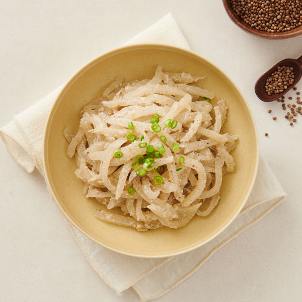 - 접시에 담기: 무나물을 접시에 담아 예쁘게 배치한 후 마지막으로 참기름을 뿌려줍니다.